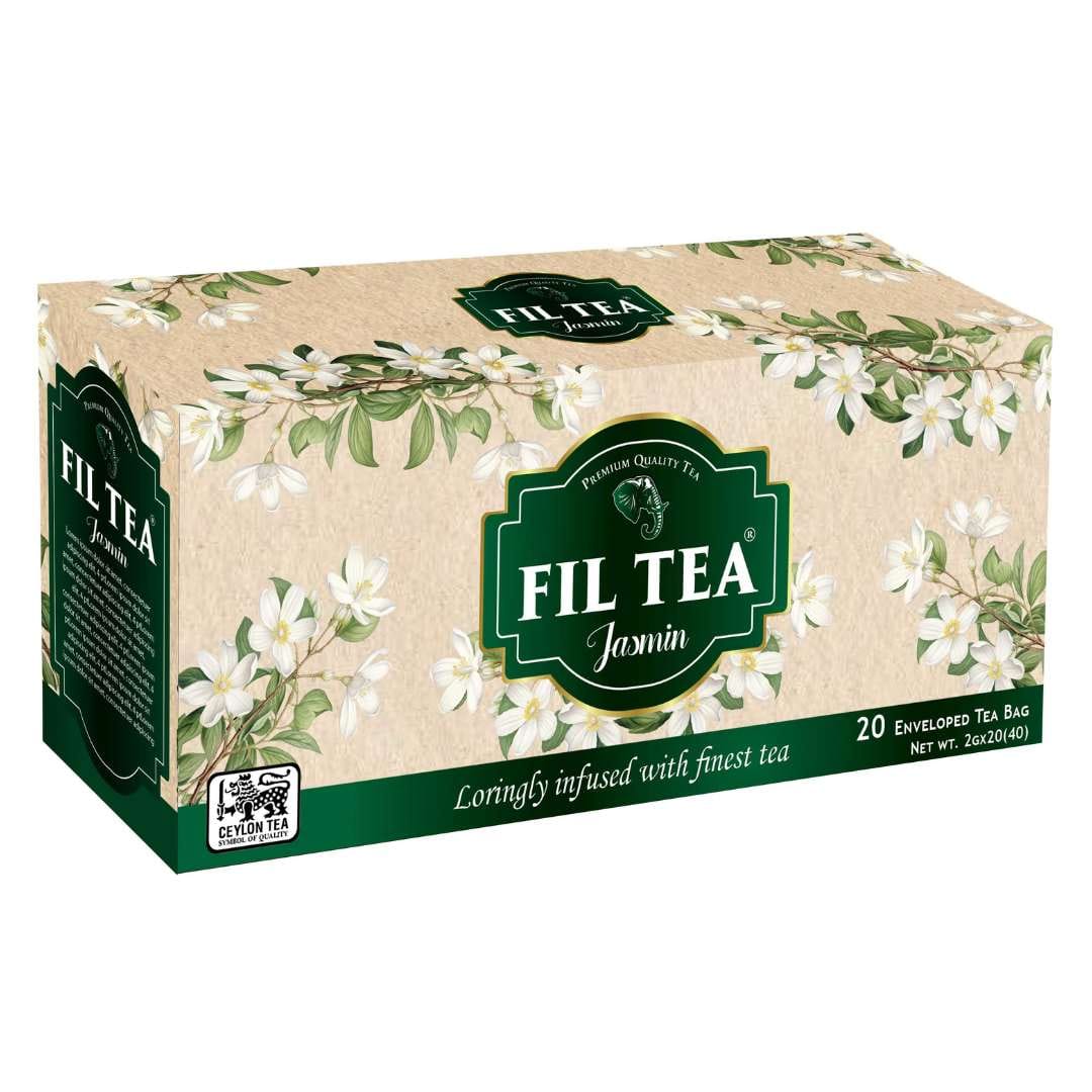 Experience a unique fusion with FIL Tea Jasmine Flavoured Tea, where the robust character of Pure Ceylon Black Tea is artfully enhanced by the gentle, aromatic essence of jasmine. Each string & tag tea bag is individually sealed in a paper carton to maintain its vibrant freshness. Offered in a pack of 20 tea bags.