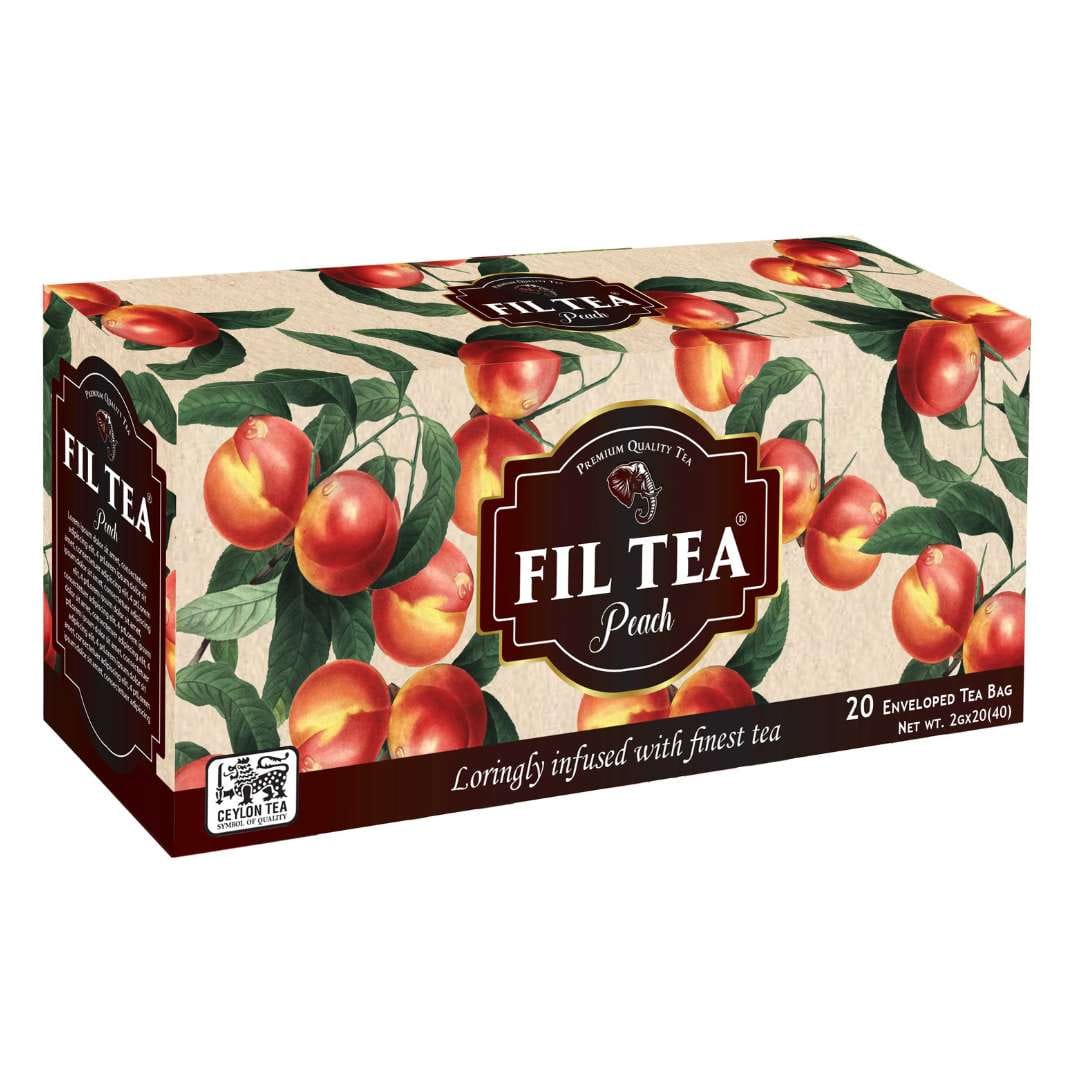Embrace a burst of summer in every sip with FIL Tea Peach Flavoured Tea—where robust Pure Ceylon Black Tea is gracefully blended with the delicate sweetness of peach. Each string & tag tea bag is carefully sealed in a paper carton to lock in freshness, and the brew is conveniently delivered in a pack of 20 tea bags.