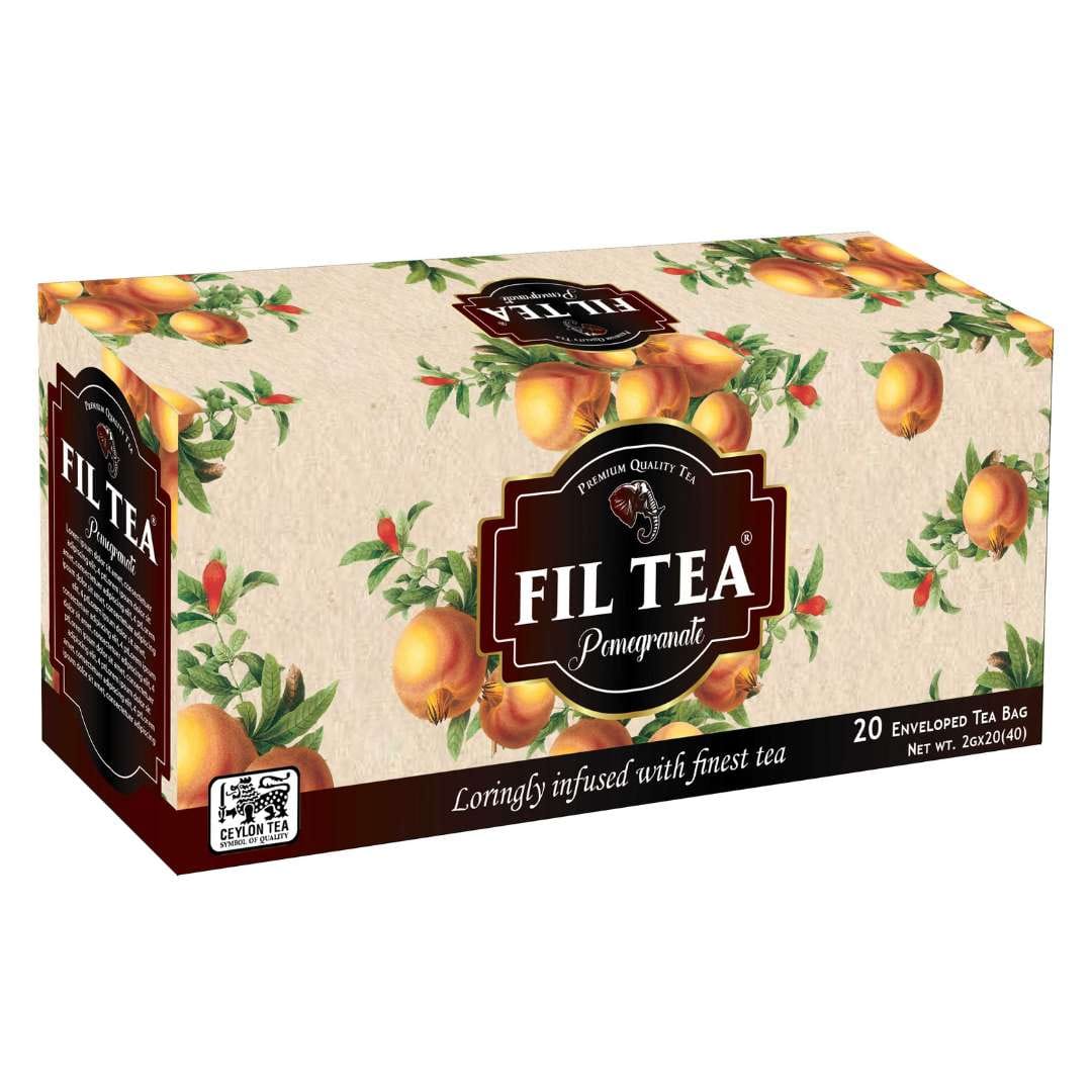Taste the perfect balance of bold Pure Ceylon Black Tea and the vibrant, sweet-tart flavour of pomegranate with FIL Tea Pomegranate Flavoured Tea. Each string & tag tea bag is carefully packed in a paper carton to maintain its freshness. Available in convenient packs of 20 tea bags.